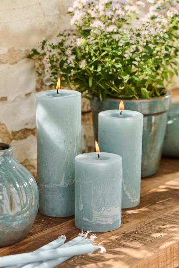 Rustikale Kerze – Staubblau, Ø 8 cm, H 18 cm